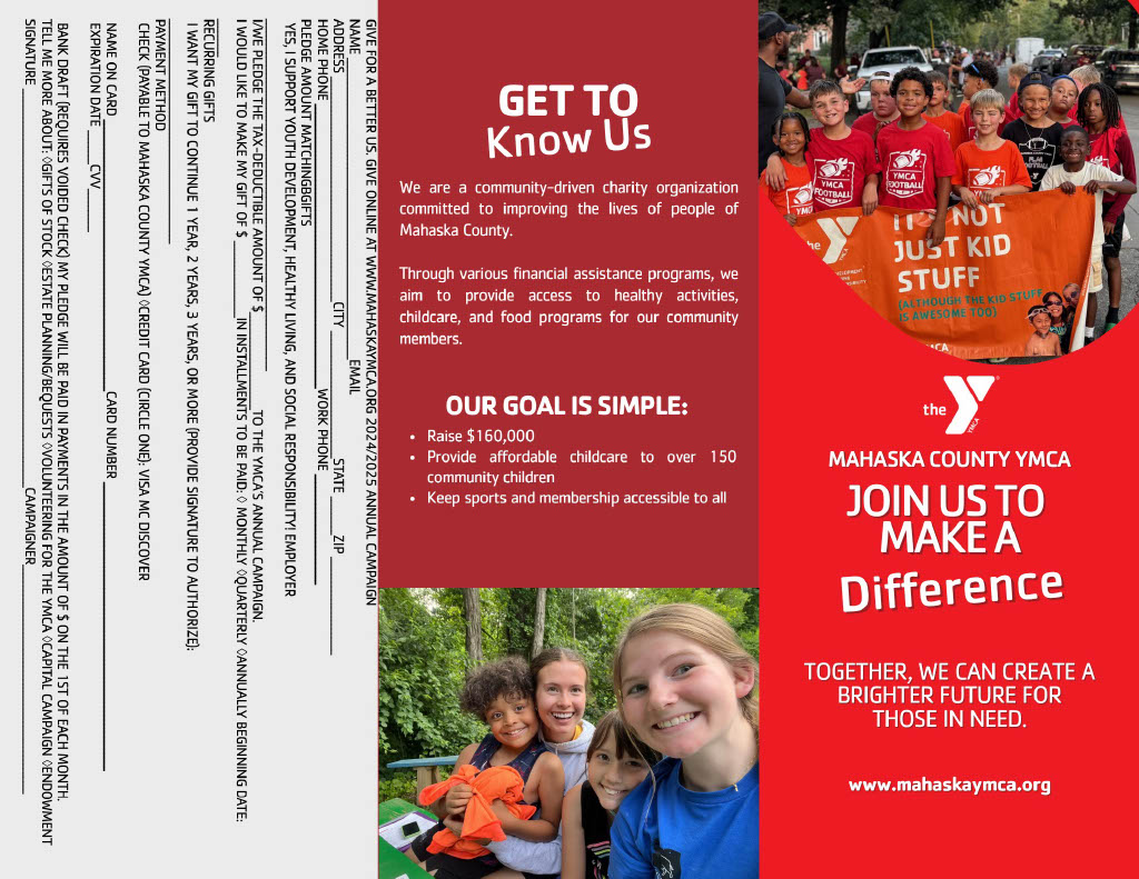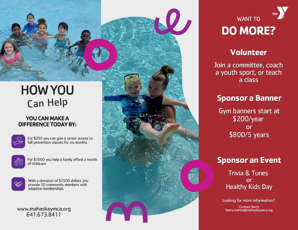 The Mahaska County YMCA is a 501(C)(3) Non-Profit Organization. Donations are tax-exempt FIN: 42-0741010